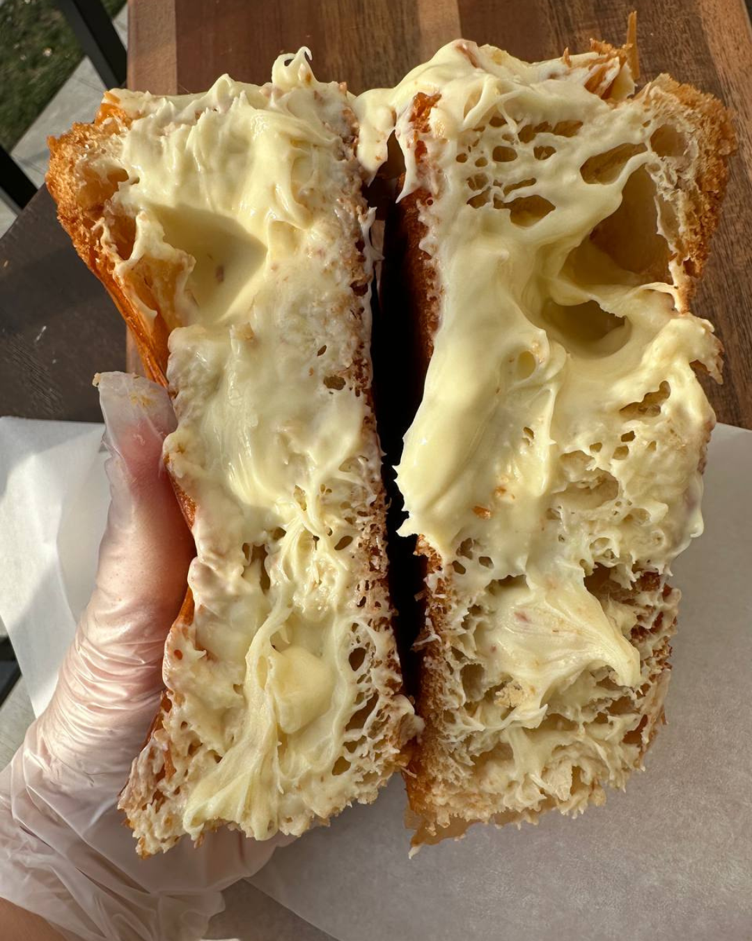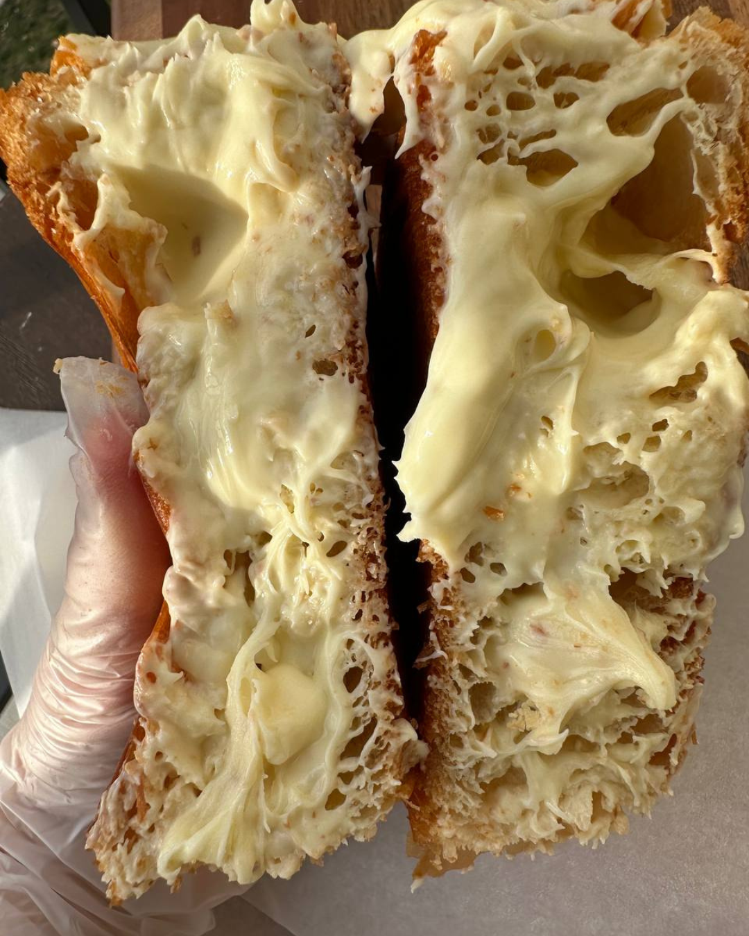 A soft, crispy croissant to combine with your morning coffee, chocolate or fruit juice. Generously filled with White Chocolate cream, so you can enjoy every bite. Baked with the best ingredients to keep it fresh and soft when you take it to your mouth.