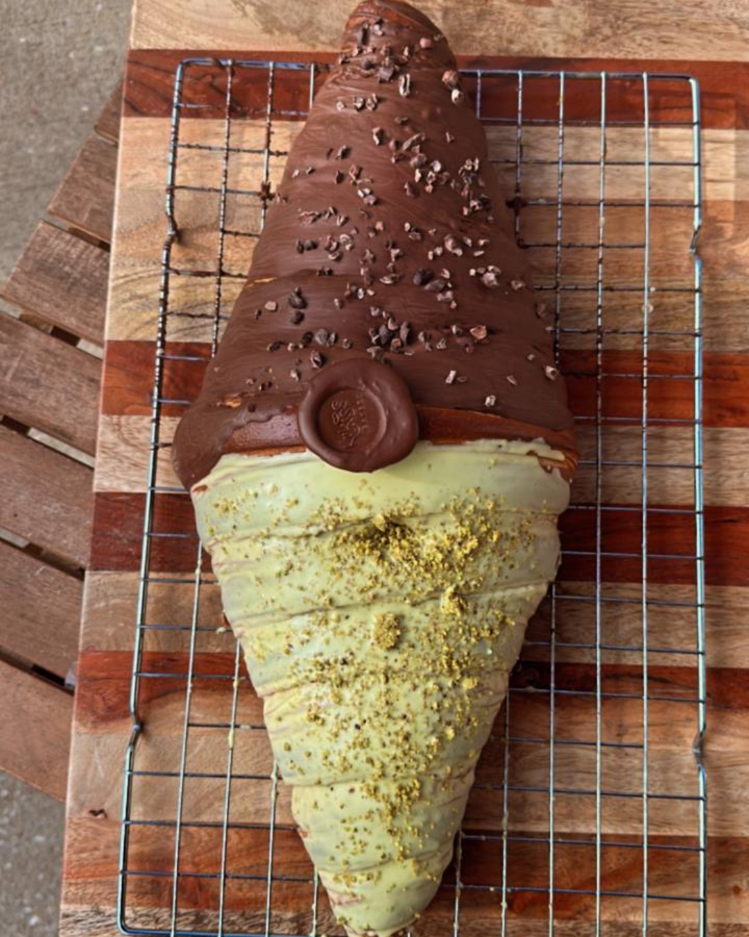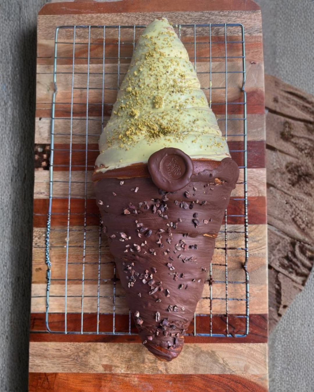 Indulge in our most decadent creation of the season. Our XL Croissants are crafted with buttery, flaky layers and filled generously with pistachio cream or rich chocolate cream. Each one is dipped in silky chocolate and finished with a festive topping of crushed pistachios or chocolate drizzle.